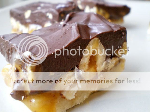 4. In another saucepan, melt chocolate chips and peanut butter. Spread over bars. Let stand until cool and cut into small rectangles (or big if you want, I don't care).